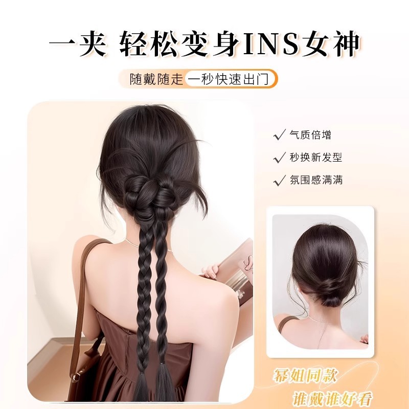 Wig Braid Clip High Ponytail Artificial Hair Chicken Feather Bud Twist Long Braid Hair Accessories New Chinese Style Ponytail Wig