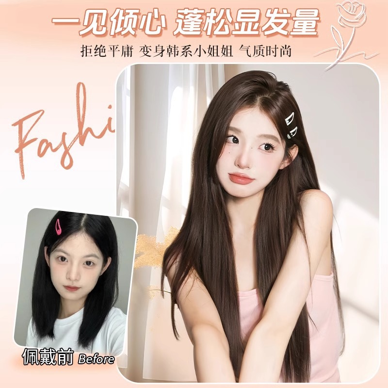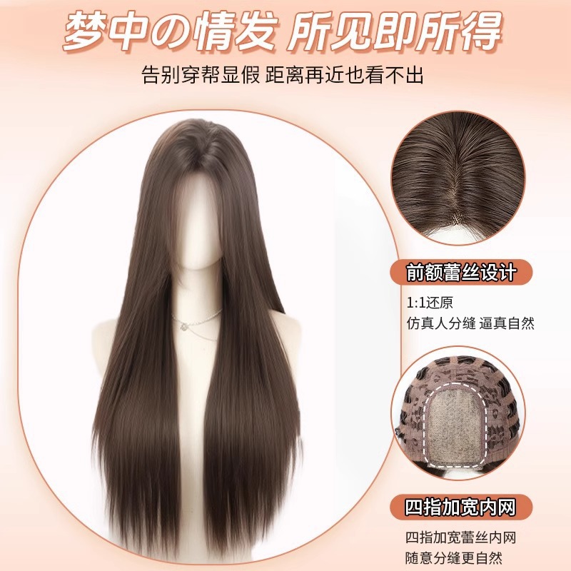 Wig Female Upgraded Forehead Lace Black Long Straight Full Headgear Can Be Split into Fluffy Lolita Natural Artificial Wig Set