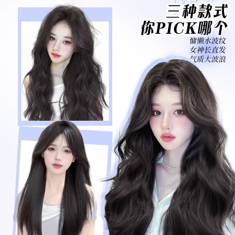 Wig for Women with Long Hair, Big Waves, Natural Artificial Hair, Autumn and Winter Atmosphere, Medium-Parted Long Curly Hair, Full Wig, Full Headgear