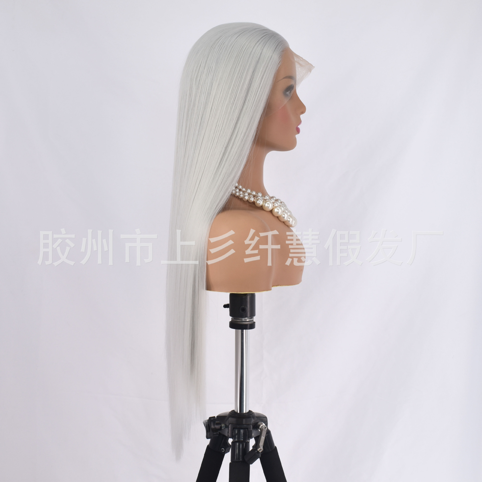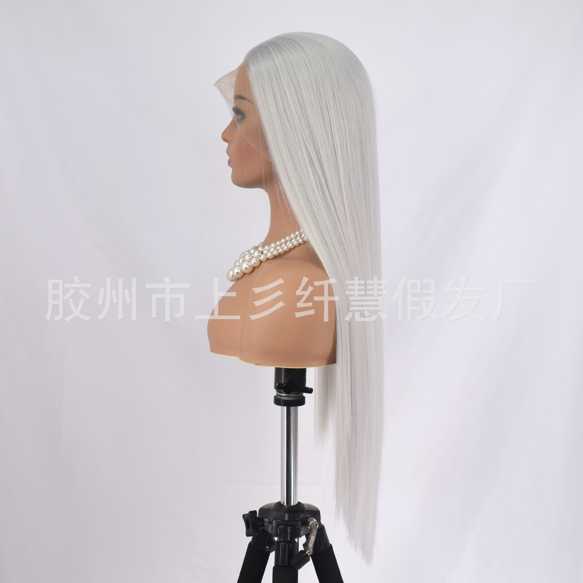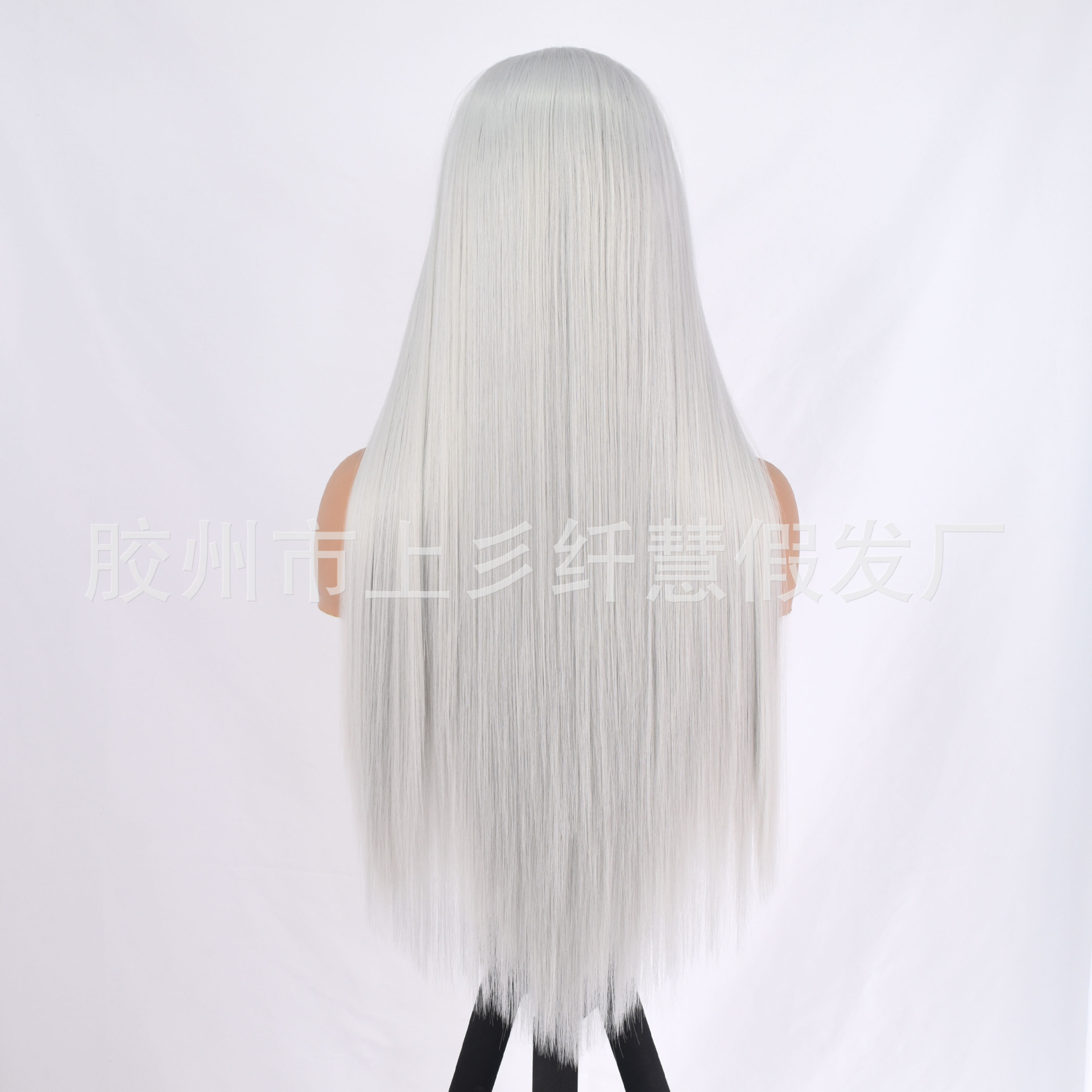 Wig front lace white long straight hair matte chemical fiber whole top headgear photography cos a generation of hair