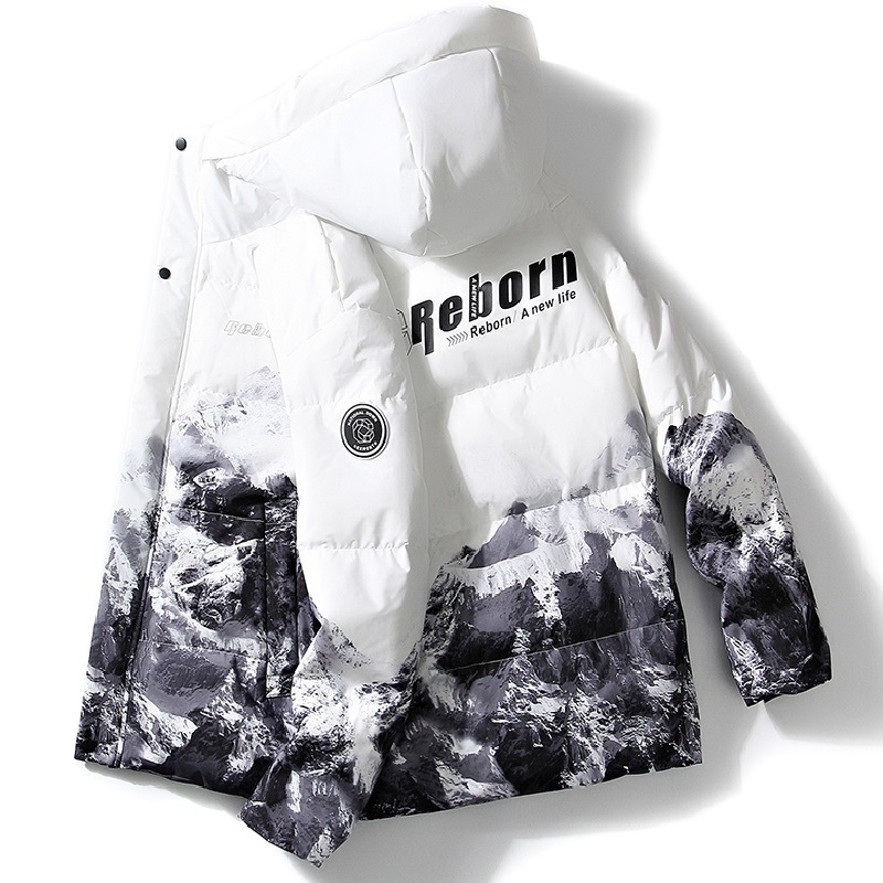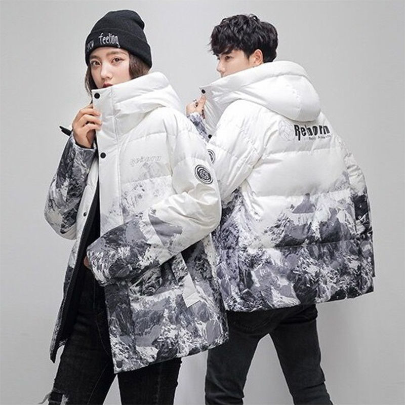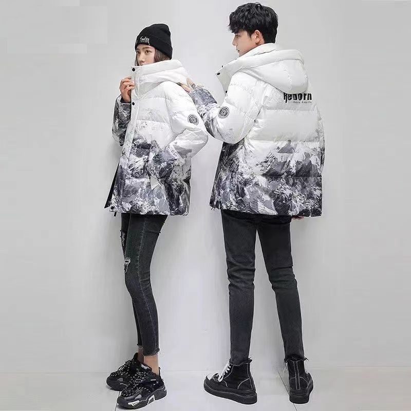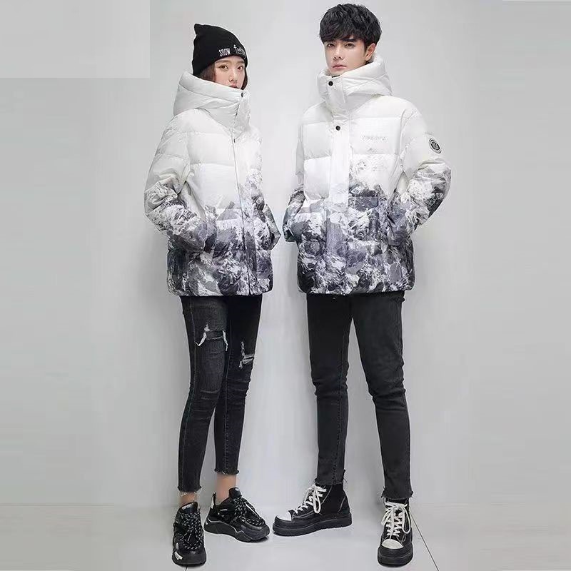 Winter 2023 New Down Jacket Short Handsome Snow Mountain Gradient Couple Down Jacket White Duck Down Casual Jacket