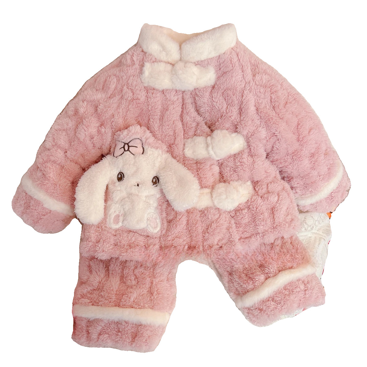 Winter baby children's clothing fleece-lined thickened baby girls' winter clothes cartoon winter warm buckle girls' homewear suit