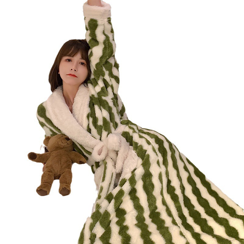 Winter Coral Fleece Nightgown Women's Autumn and Winter fleece-lined to Ankle Nightgown Thickened Flannel Bathrobe Winter Long Pajamas