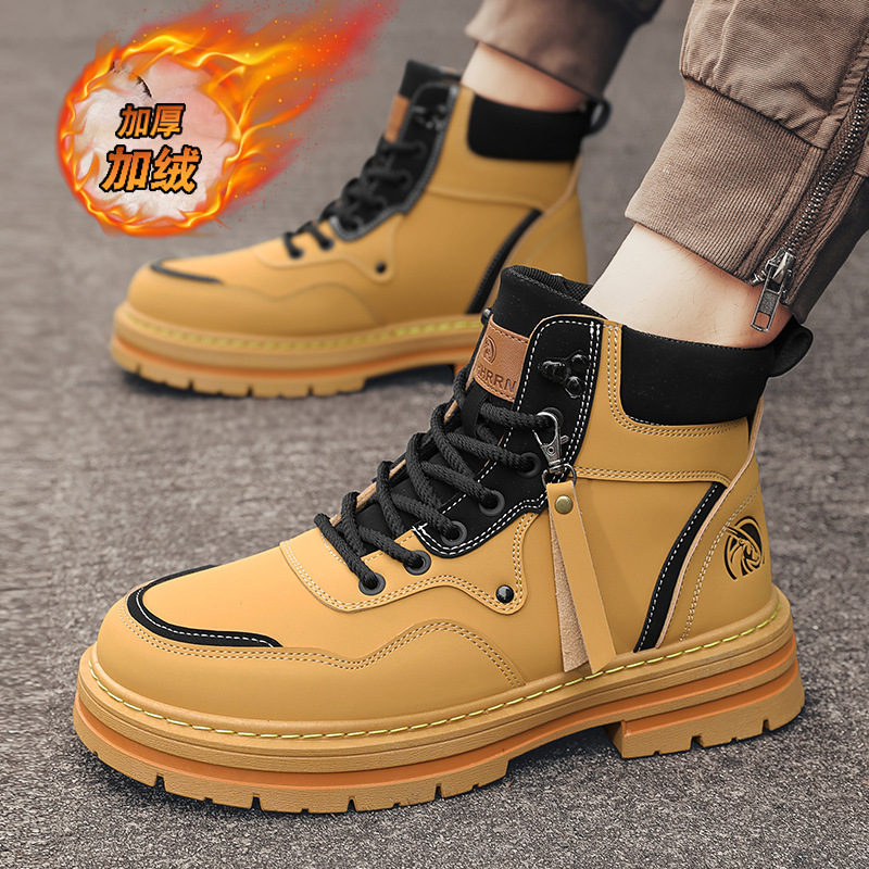 Winter Cotton Boots Men's High-top Martin Boots European and American Style Light Luxury Warm Winter high quality Workwear Boots Men's Rhubarb Boots