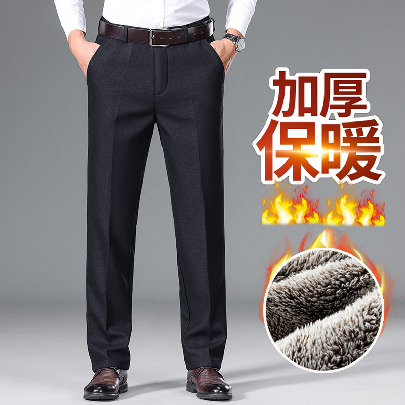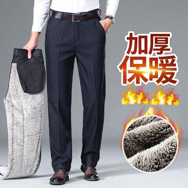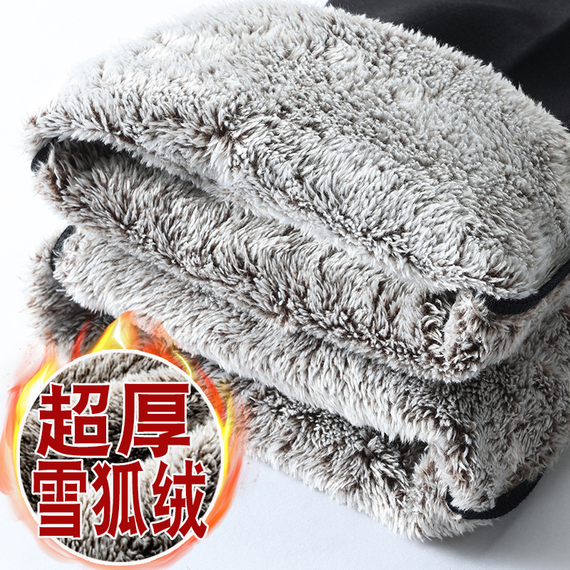 Winter Dad's Fleece-lined Pants Middle-aged and Elderly People's Thickened Snow Fox Fleece Casual Pants Men's Middle-aged Men's Western Pants for Outer Wear