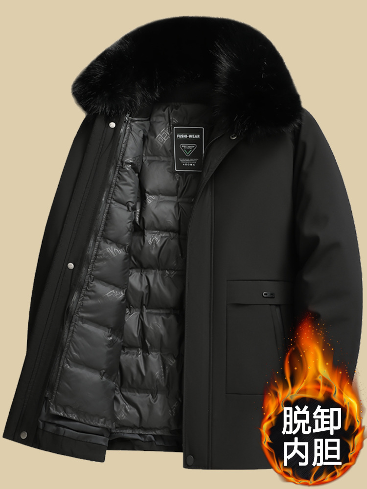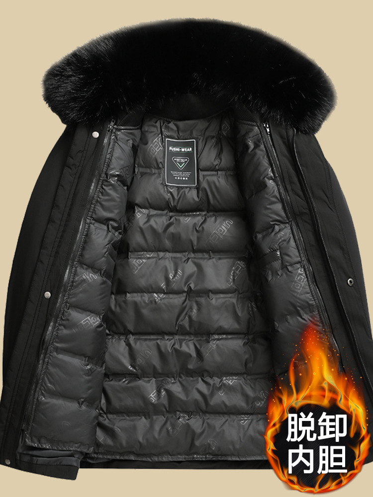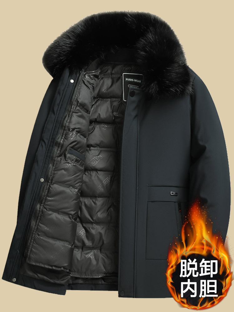 Winter Down Jacket for Middle-aged and Elderly Men's Thickened Mid-length Parker Clothing Removable Inner Pillow Dad's Winter Jacket