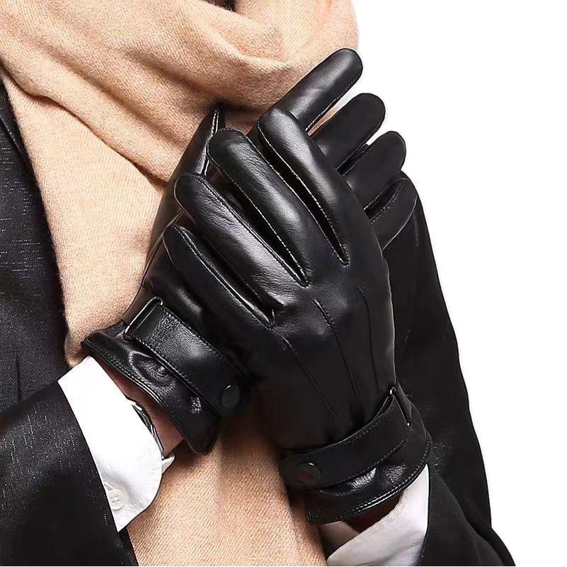 Winter Men's Gloves Warm fleece-lined Thickened Touch Screen Windproof Cold-proof Leather Gloves Outdoor Riding Three-line Gloves