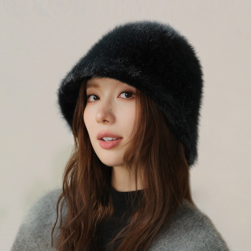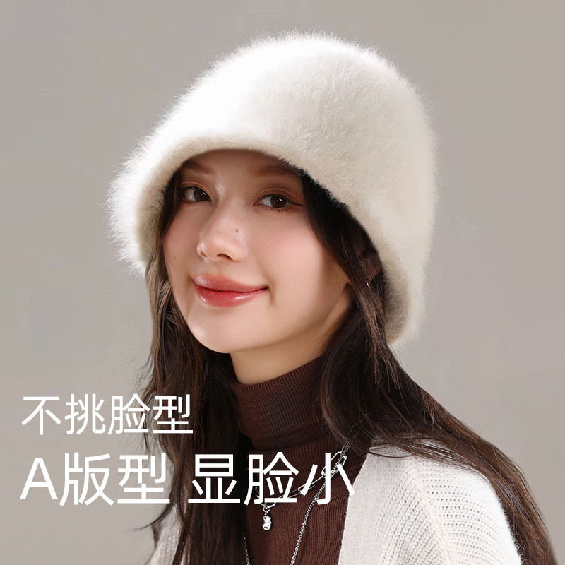 Winter new rabbit fur hat women's furry warm fashion fisherman hat face small net red high-end bucket hat