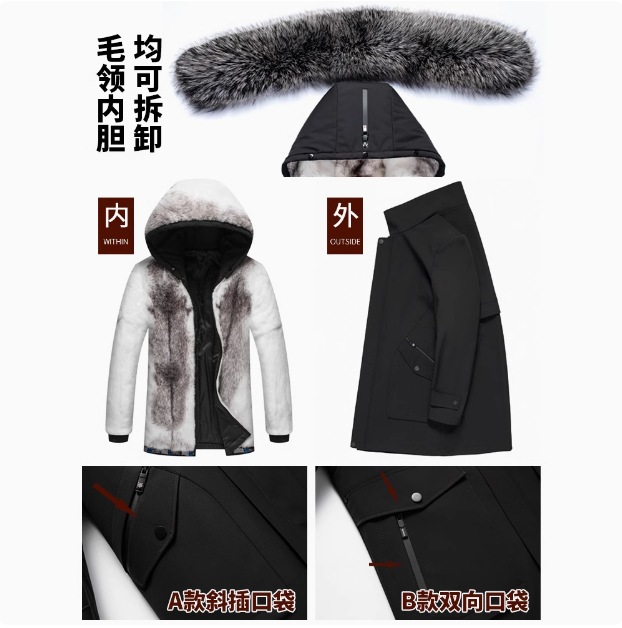 Winter Pike Men's Mid-length Mink Liner fleece-lined Thickened Whole Mink Coat Fur One-piece Fur Coat