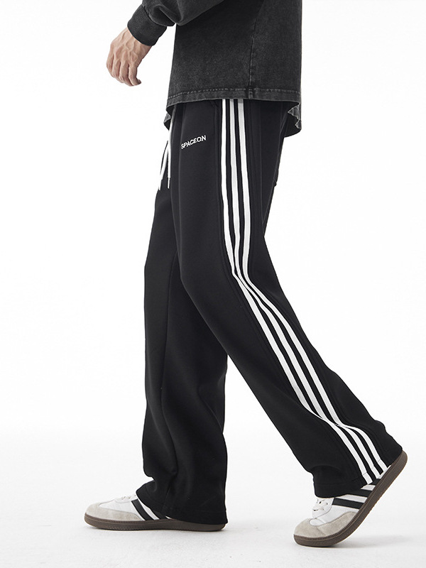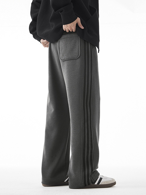Winter thermal velvet men's fleece-lined pants new three bars straight tube drape warm thickened boys casual pants