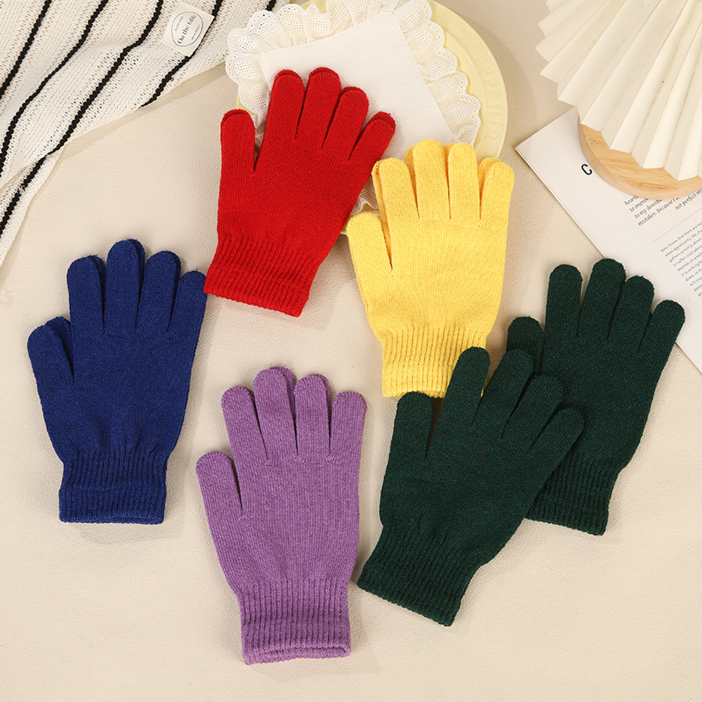 Winter Warm Knitted Gloves for Adults, Unisex, Candy Color, Solid Color, Five-Finger Couple Style, Protective, Simple Stripes