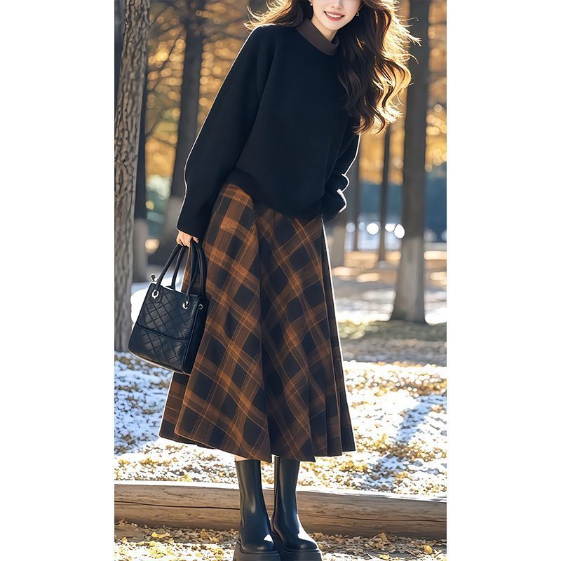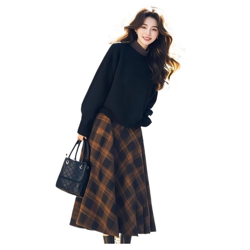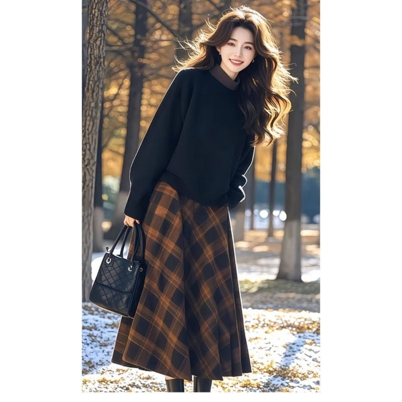 Winter with a set of 2025 new xiangfeng socialite contrast sweater plaid skirt age-reducing suit women
