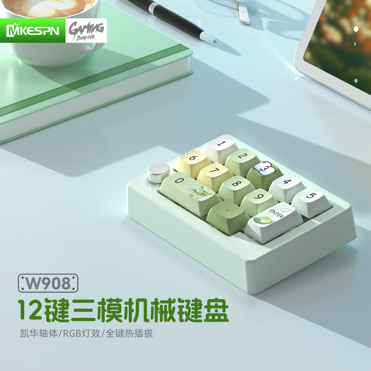 Wireless three-mode hot-swappable digital mechanical keyboard macro definition RGB game mechanical keypad knob hardware macro