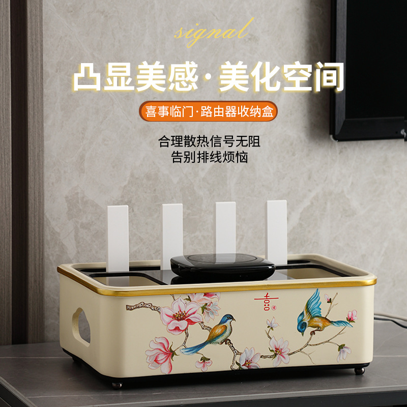 Wireless wifi Router Storage Box Ornaments Living Room TV Cabinet Wire Finishing Artifact Desktop Light Cat Storage Rack