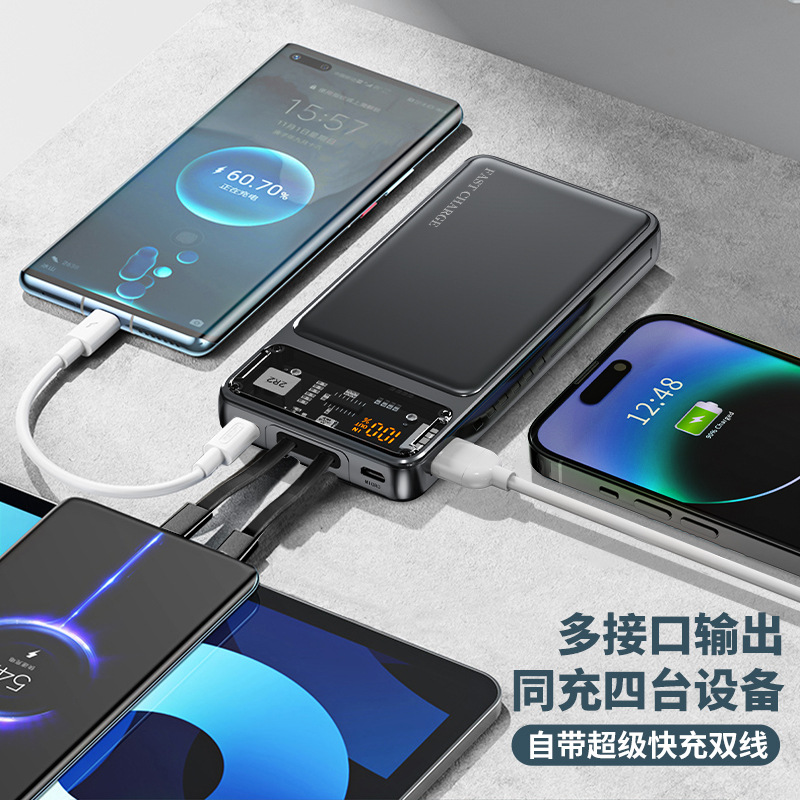 Customized Fast Charging Power Bank with Cable, Ultra-Thin Large Capacity 20000 Mah Mobile Power Supply Cross-Border Power Bank