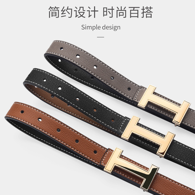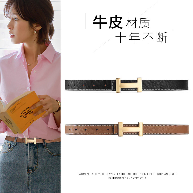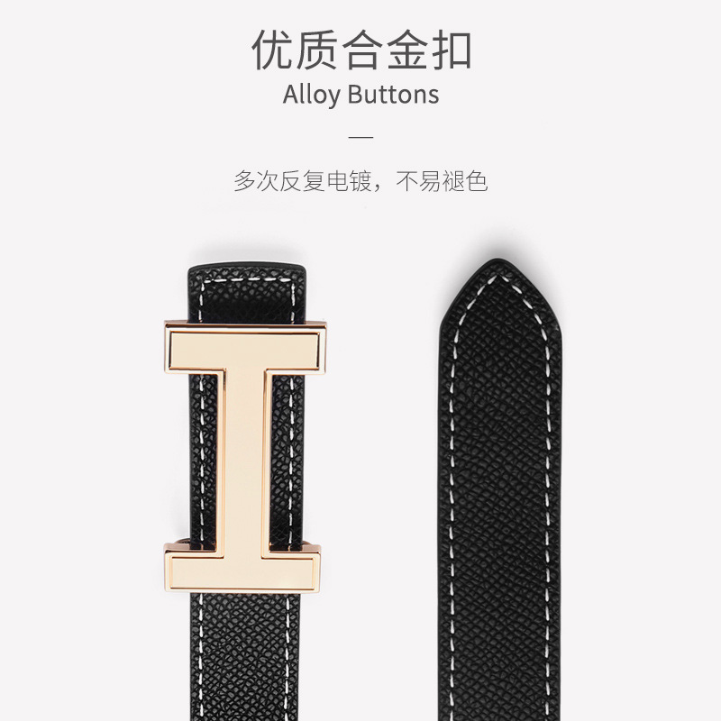 Women's Belt Genuine Leather Fashion H-Buckle Belt Women's All-match Decorative Trousers High-end Business Two-layer Cowhide for Young People