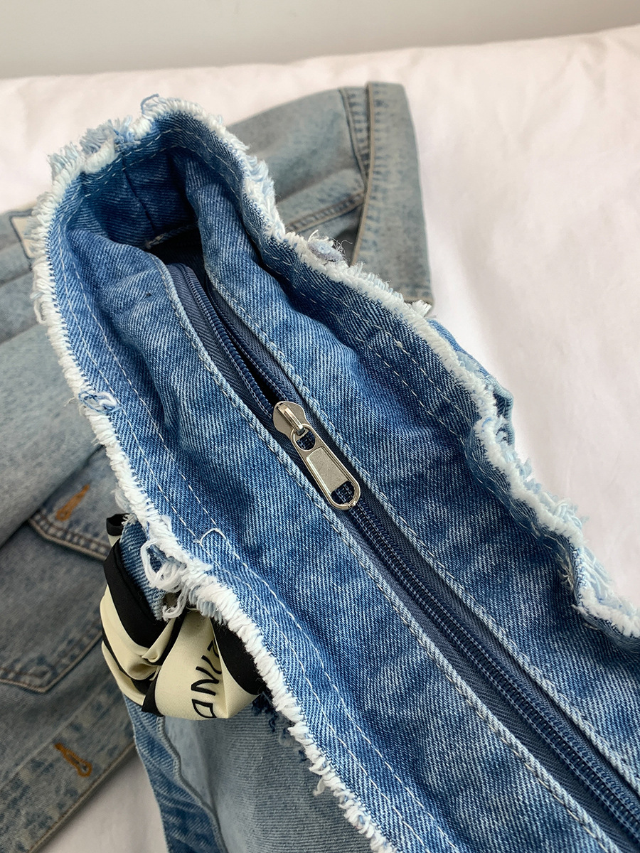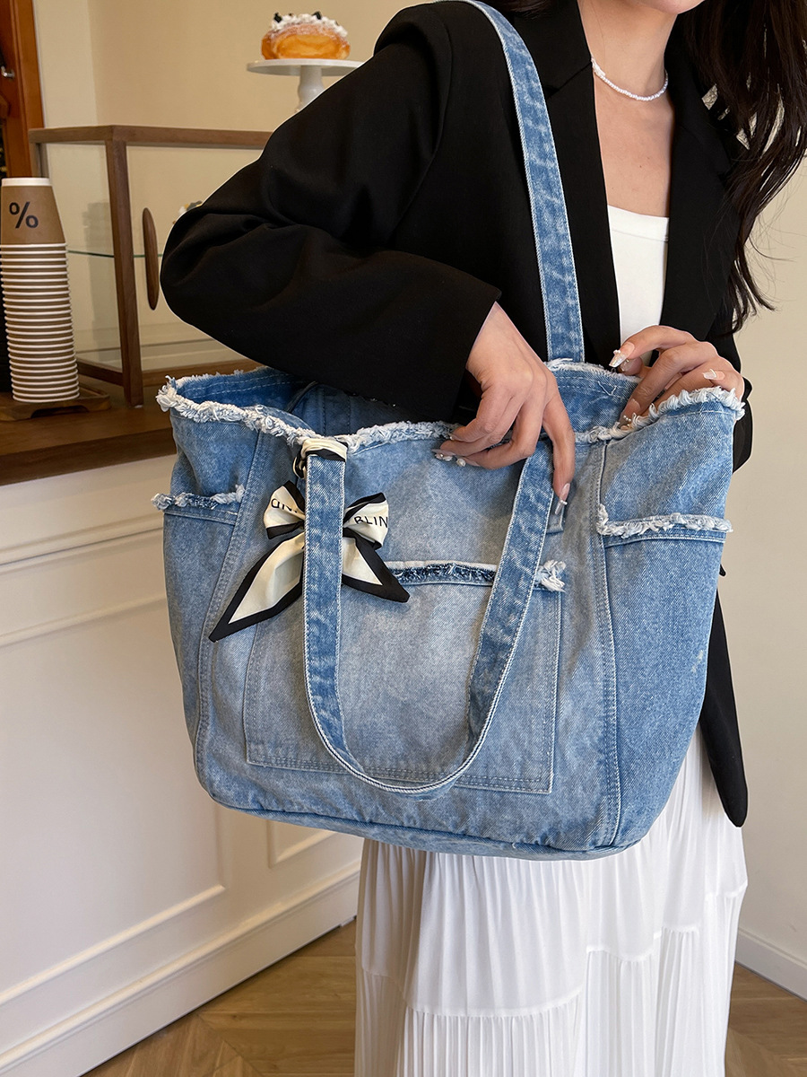 Women's Contrast Color Washed Denim Tote Bag High-End Design Large Capacity Commuting Shoulder Bag Beautiful Handbag