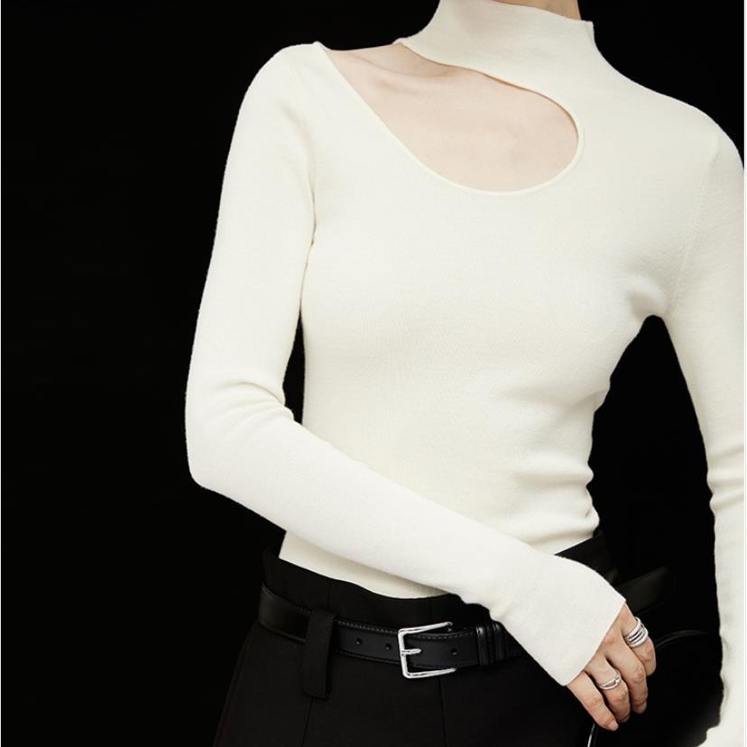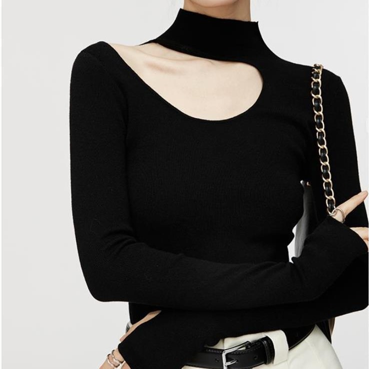 Women's half turtleneck halter sweater autumn and winter New early spring inner mid collar bottoming shirt French off-shoulder knitted top