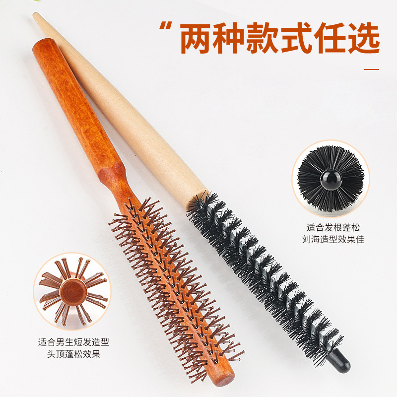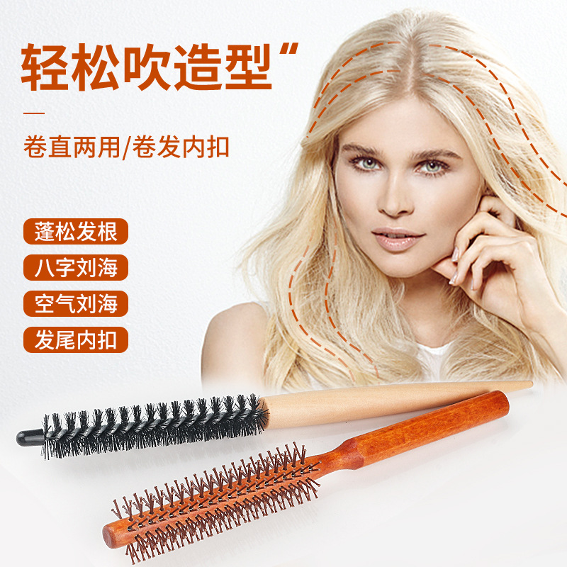 Women's Home hair root fluffy wooden roller comb bangs inner buckle curly hair shape massage round roller comb wooden comb suit