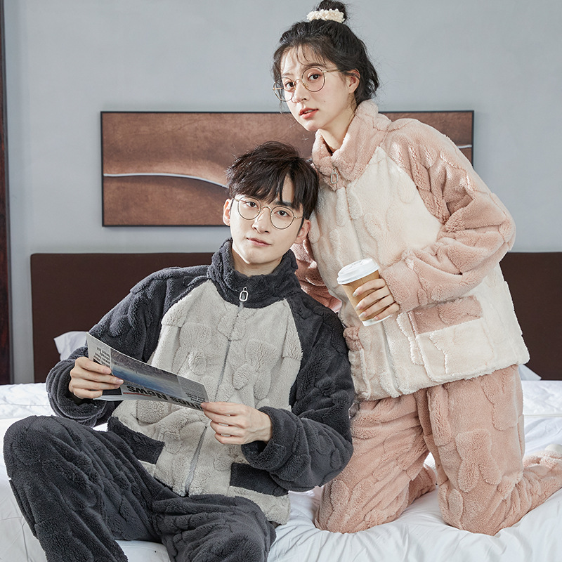 Women's Outdoor pajamas men's autumn and winter flannel thickened stand collar zipper coral fleece couple home wear suit