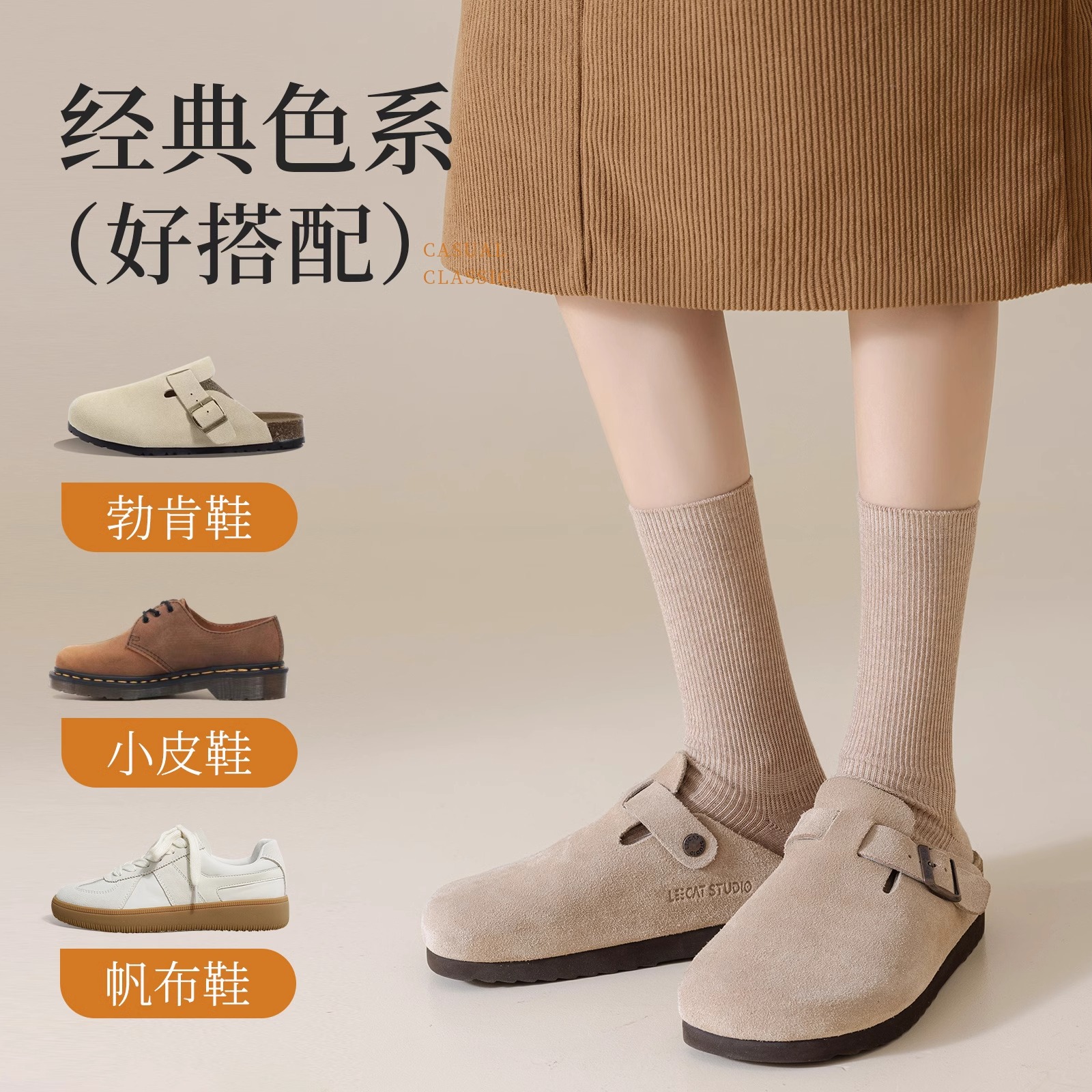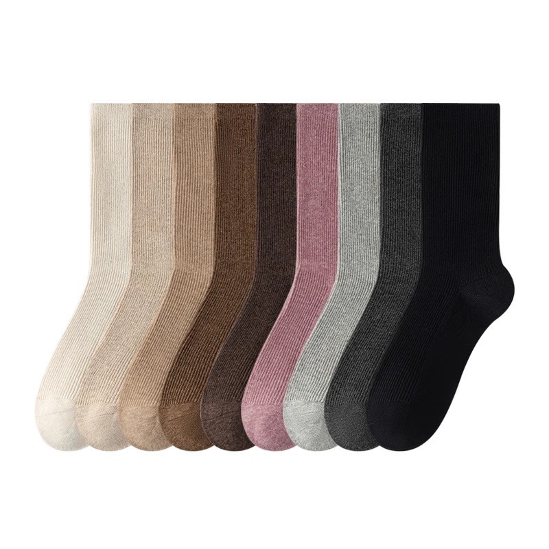 Women's Pure Cotton Socks for Autumn and Winter, Mid-Calf Length, Melange Color Series, Double-Needle Birkenstock Shoe Socks, Zhuji Socks Wholesale
