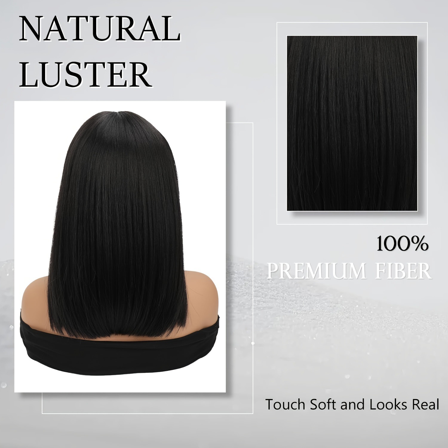 Women's Straight Hair Wig Lace Bob Synthetic Heat-Resistant, Suitable for Daily Use with Bangs, Heat-Resistant Style