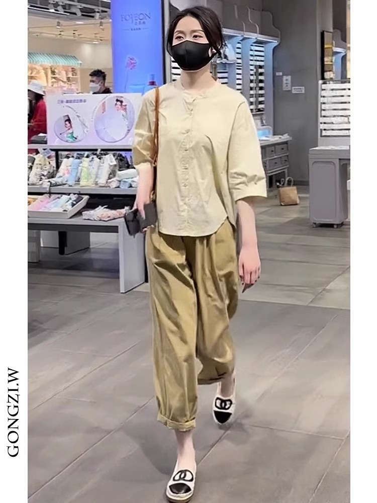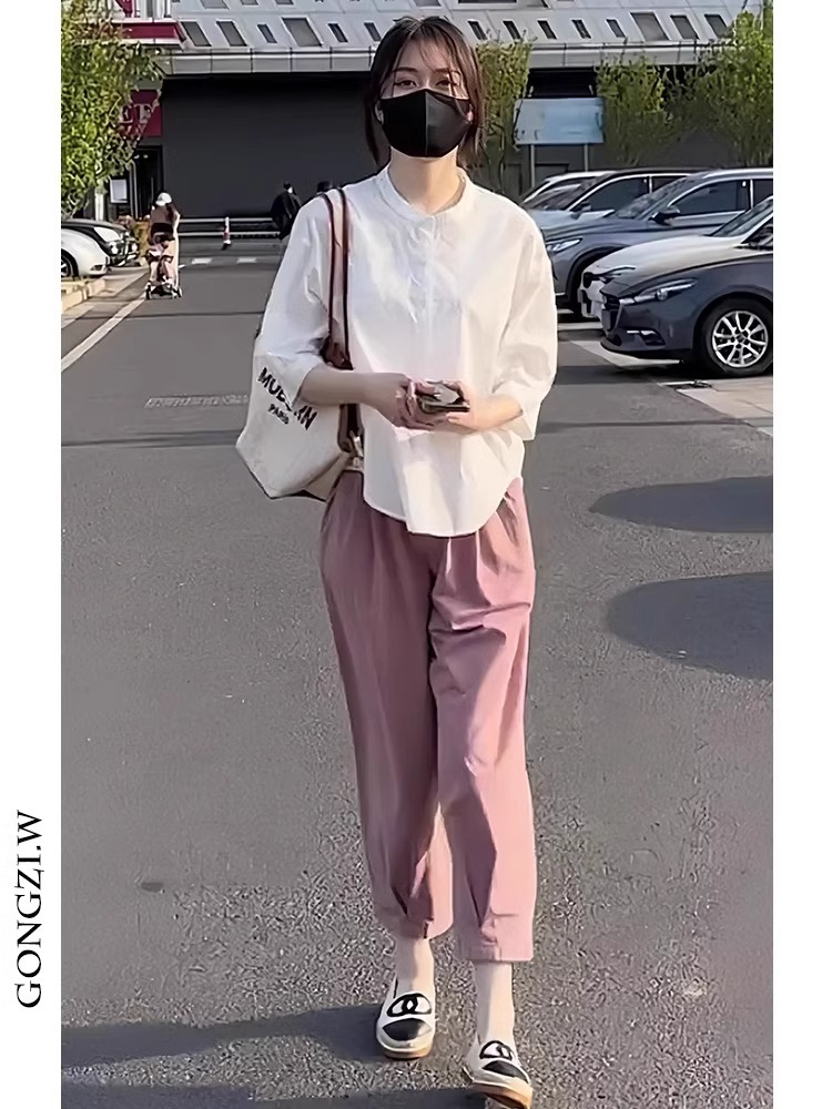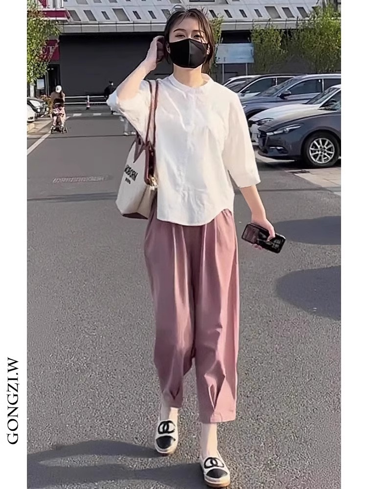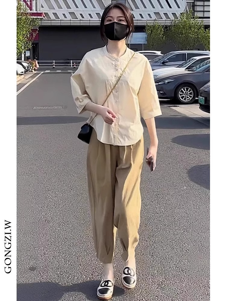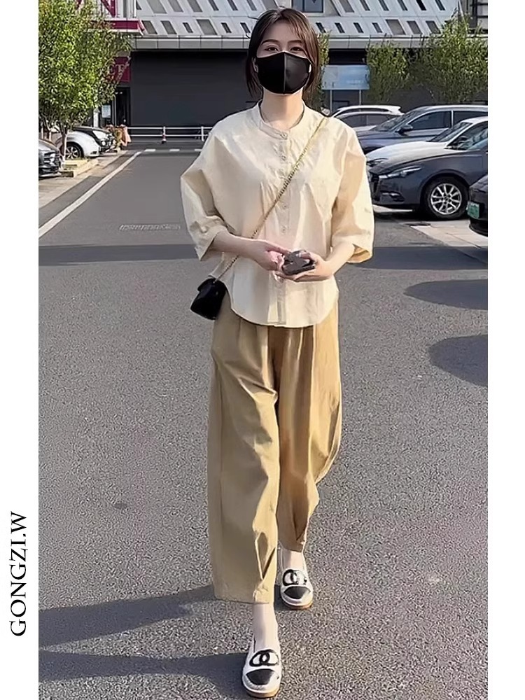 Women's suit Light Luxury High-end All-match Round Neck Elegant Shirt Top Loose Slimming Cropped Casual Wide-leg Pants