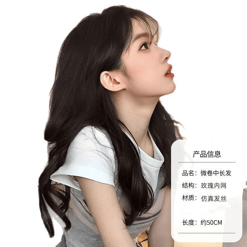 Women's Wig Full Head Cover Internet-popular Big Wave Lazy Roll Micro-roll Medium Long Hair Age-reducing Natural Artificial Hair Full Head Cover