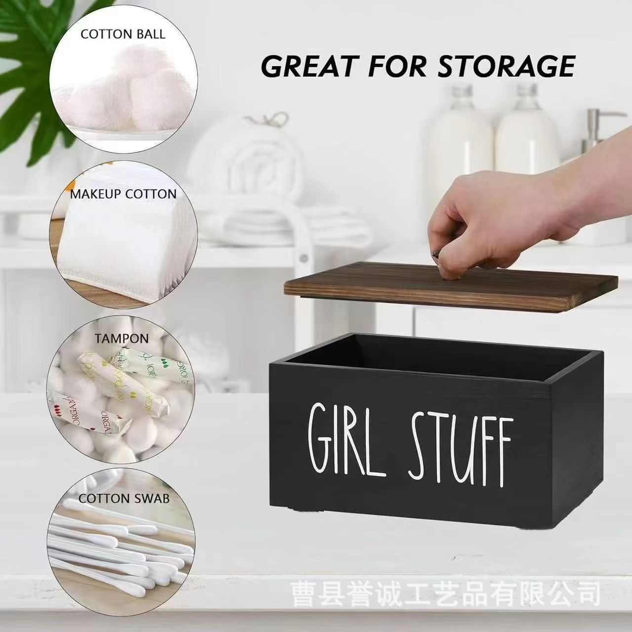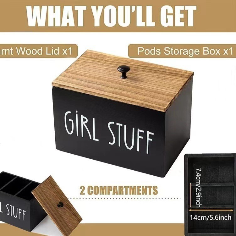 Wooden Desktop Storage Box with Lid Bathroom Sanitary Napkin Placement Box Household Compartment Storage Box Solid Wood Fit Box