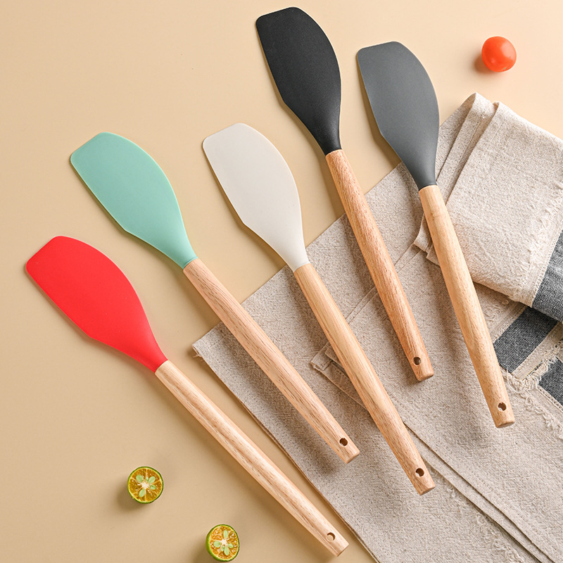 Wooden Handle Silicone Spatula in Stock Factory Amazon Baking Tools Cake Spatula Large Wooden Handle Spatula