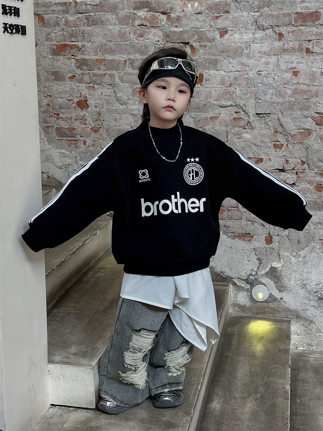 Wooden Sheep 2024 Winter New Children's Sweat fleece-lined Thickened Printed Boys' Boys' Treasure Loose Western Style Top Trendy
