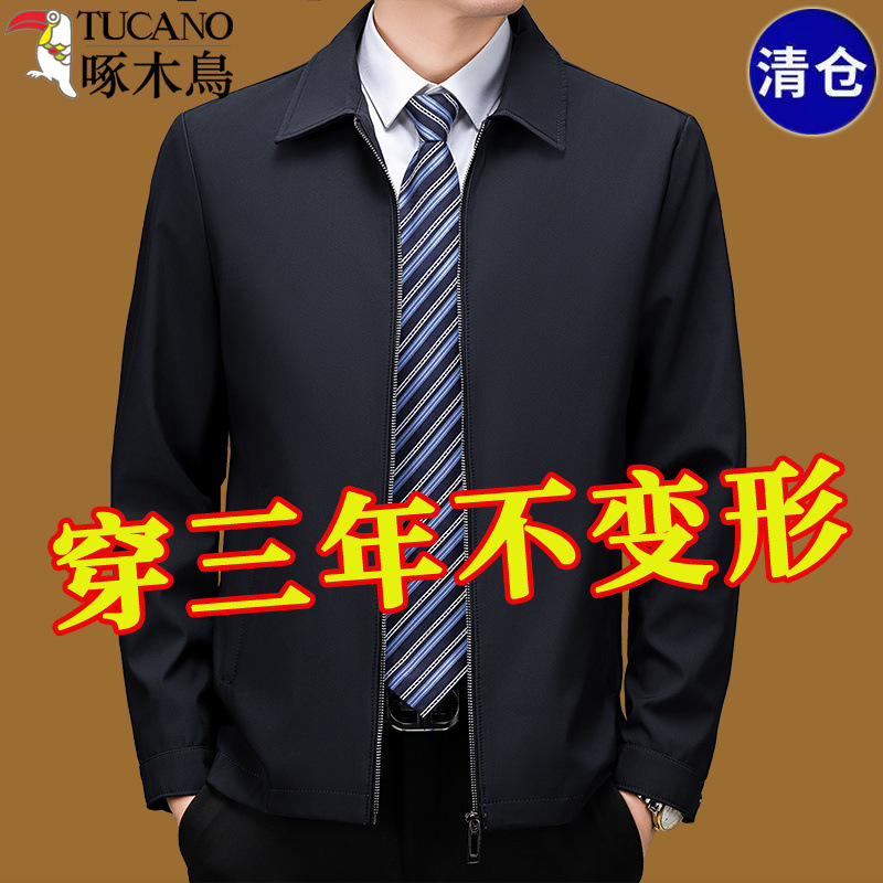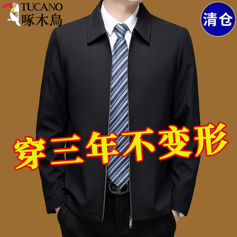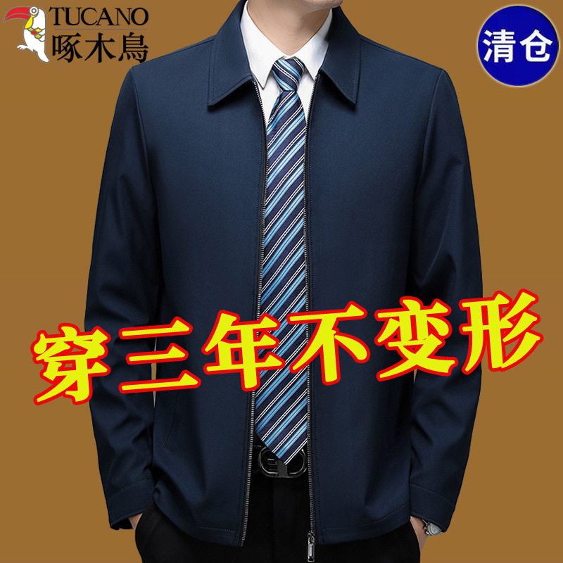 Woodpecker Jacket Men's 2024 Spring and Autumn New Men's Business Casual Executive Jacket Lapel Middle-aged Dad Men's Wear