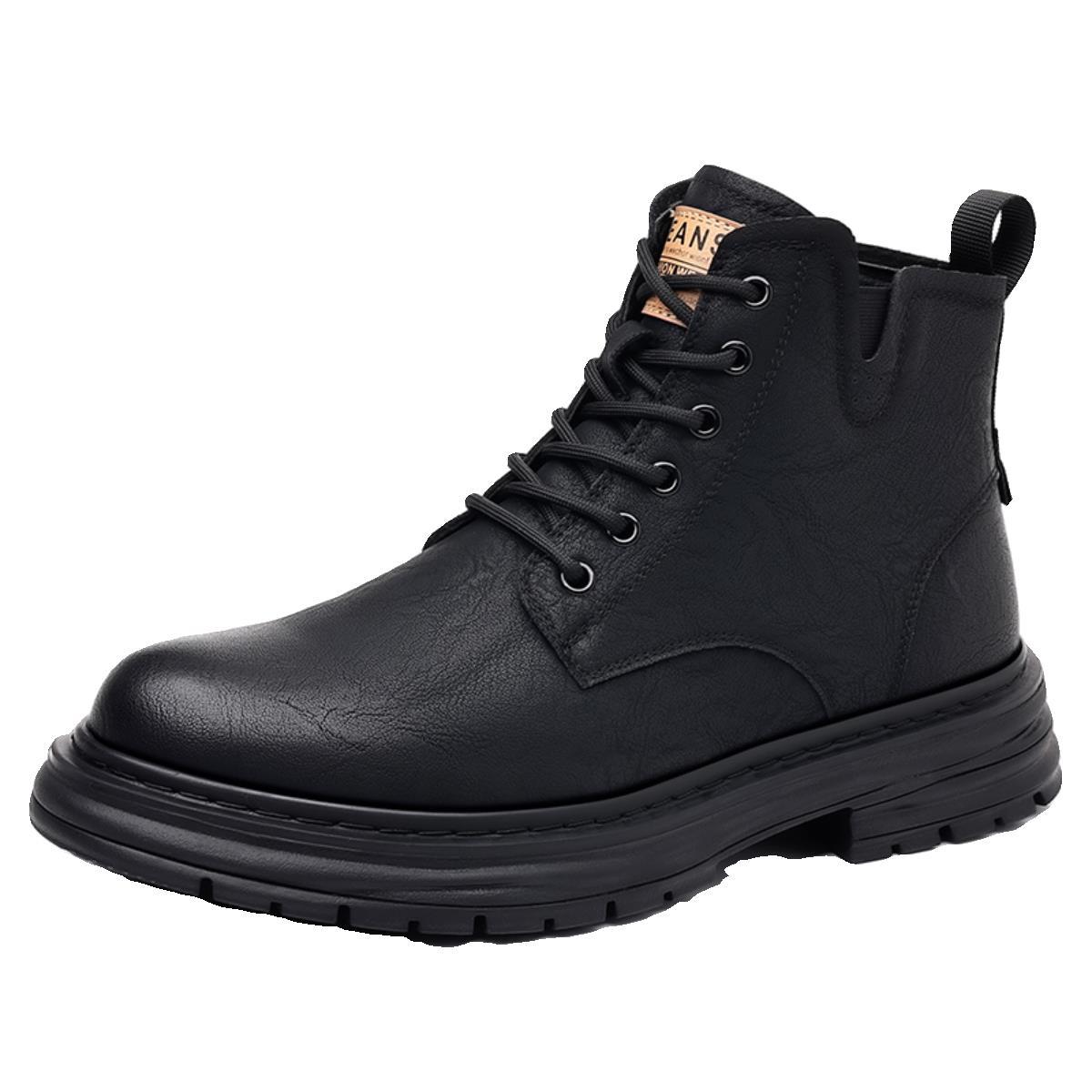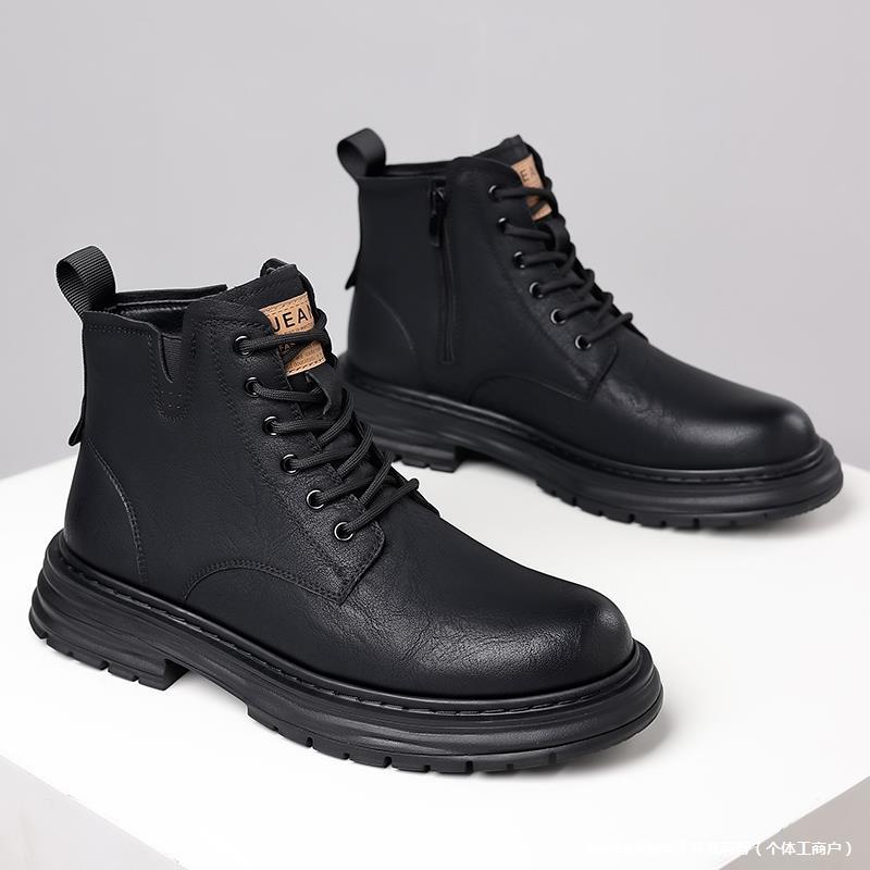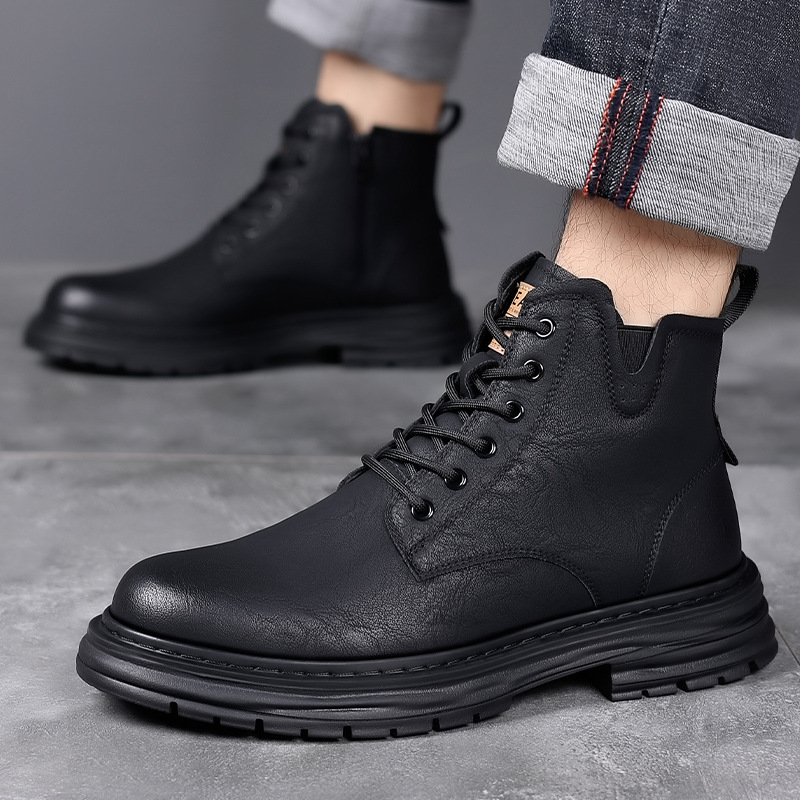 Woodpecker Men's Boots Genuine Leather Soft Sole Martin Boots Men's Plush Cotton Boots Trendy Versatile Work Boots Men's British Style Short Boots