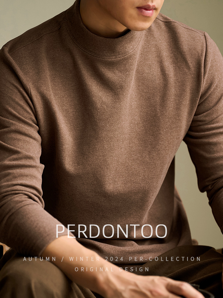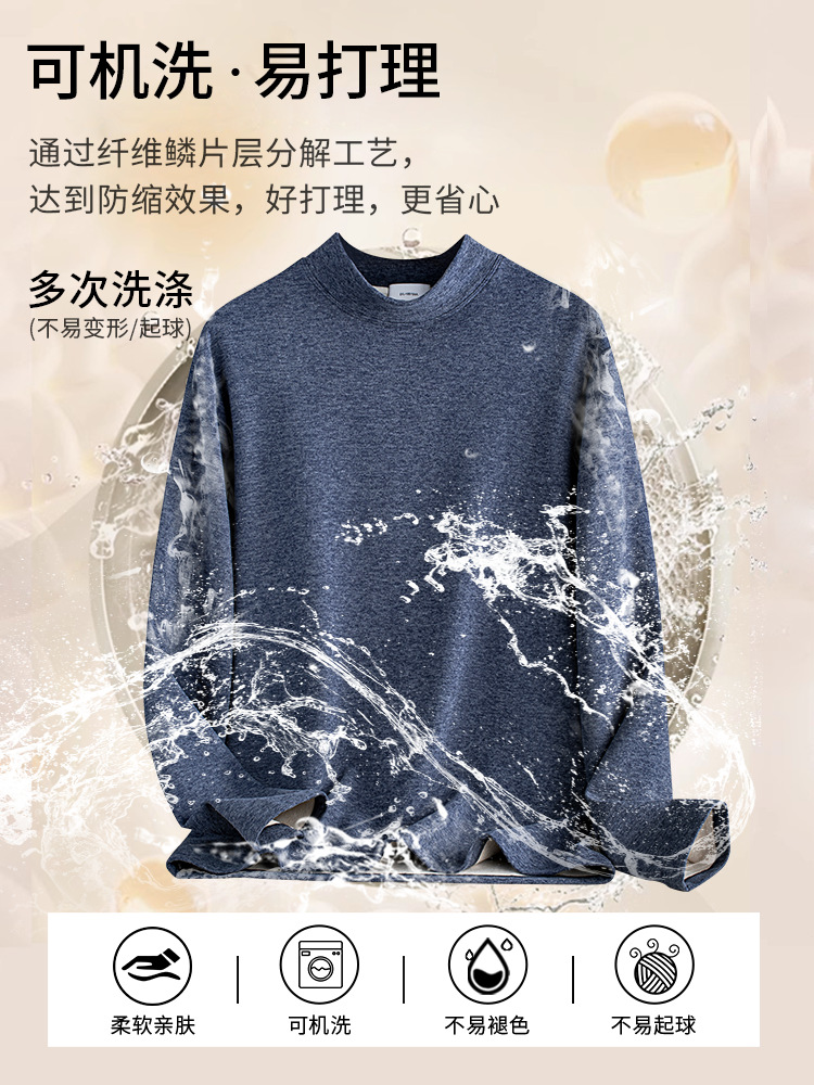 Wool Mulberry Silk Anti-Static Half Turtleneck German Velvet Bottoming Shirt Men's Classy Autumn and Winter Warm Mid-Collar Long-Sleeved T-Shirt