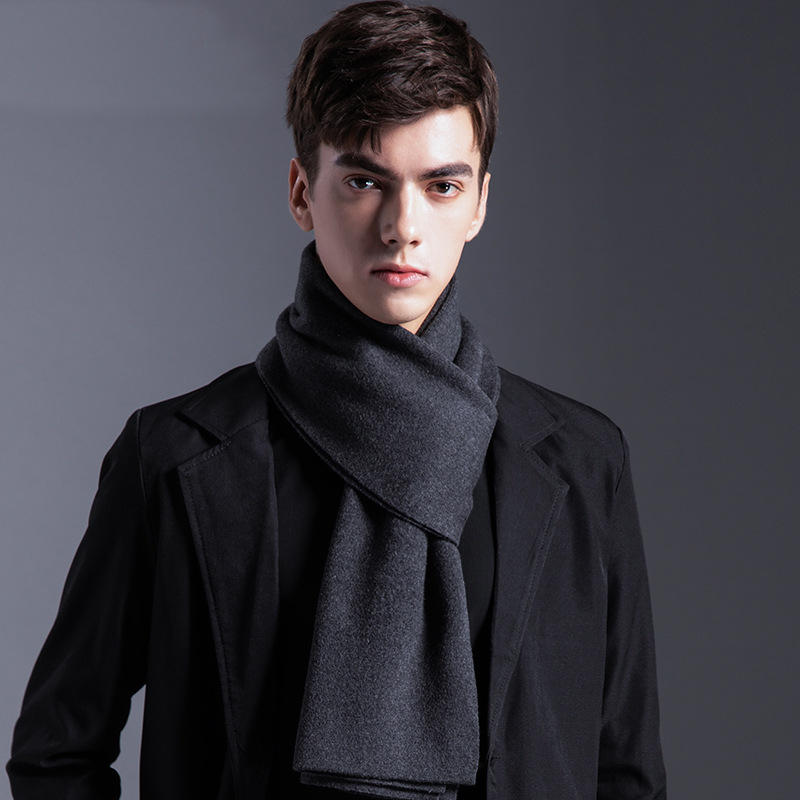 Wool Pure Color Knitted Scarf New Men's Casual Warm Scarf Korean Style Business Young People Scarf Autumn and Winter
