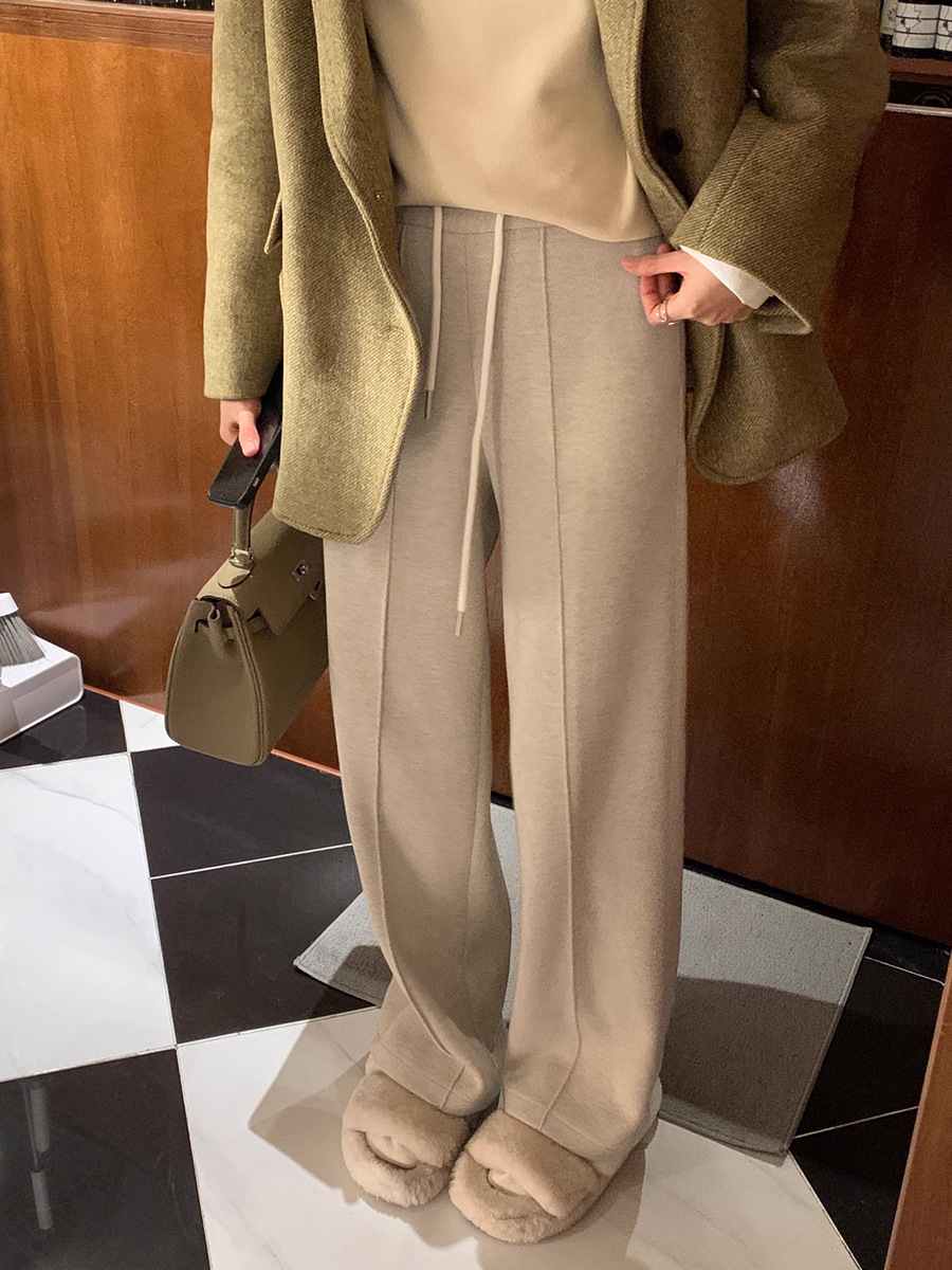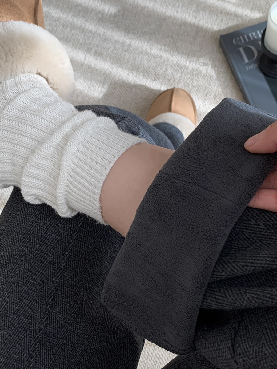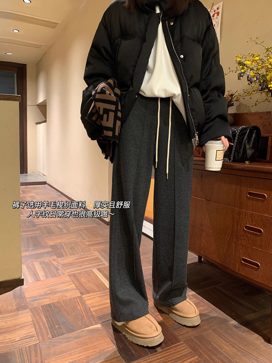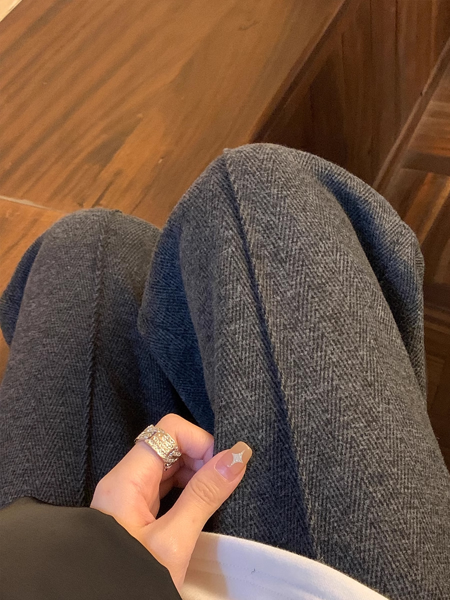Woolen Pants for Women, Autumn and Winter Style, Fleece-Lined and Thickened, 2025 New High-Waisted Casual Herringbone Pattern Suit Straight-Leg Wide-Leg Pants
