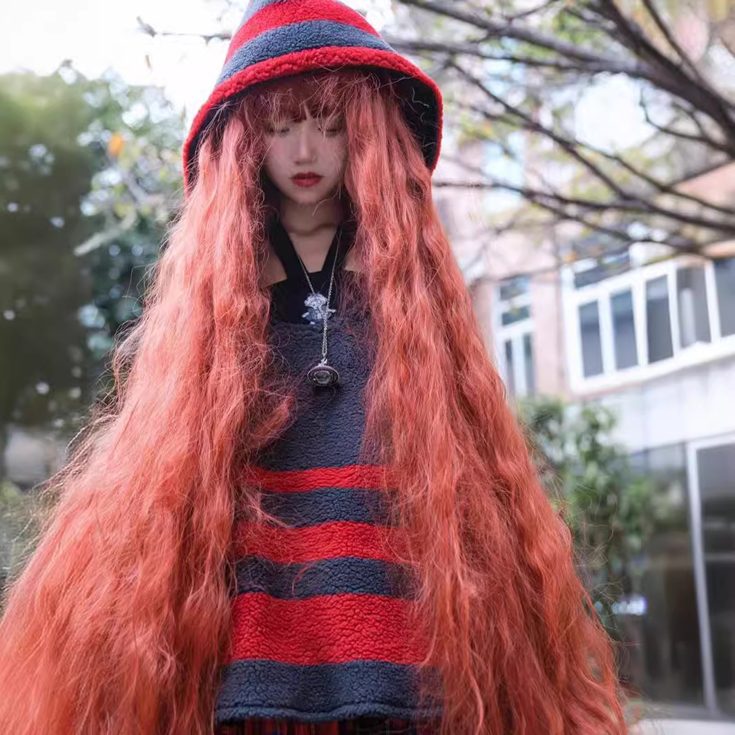 Xingcheng Wig Women's Orange 1 m Long Hair Lolita Corn Wool Roll Mori Portrait Long Curly Hair Full Head