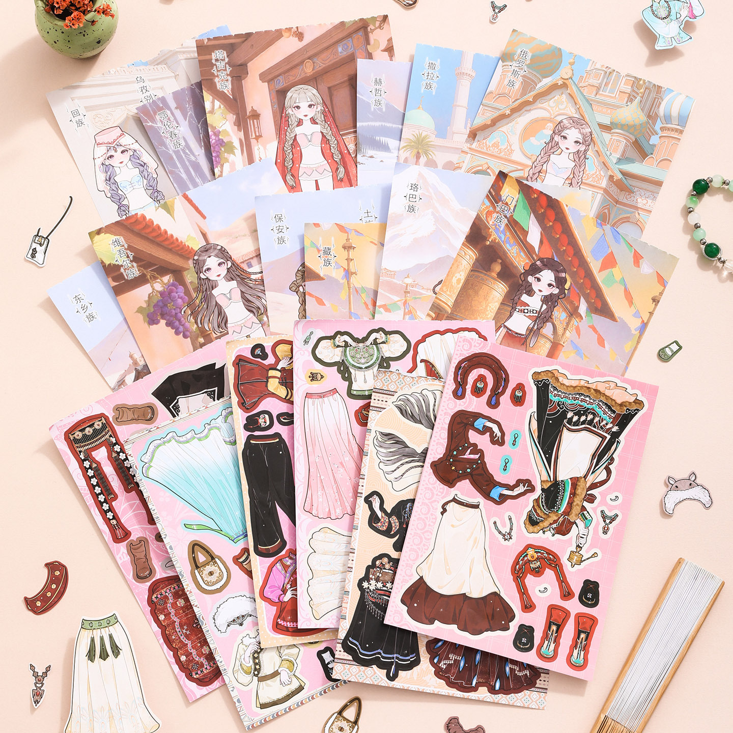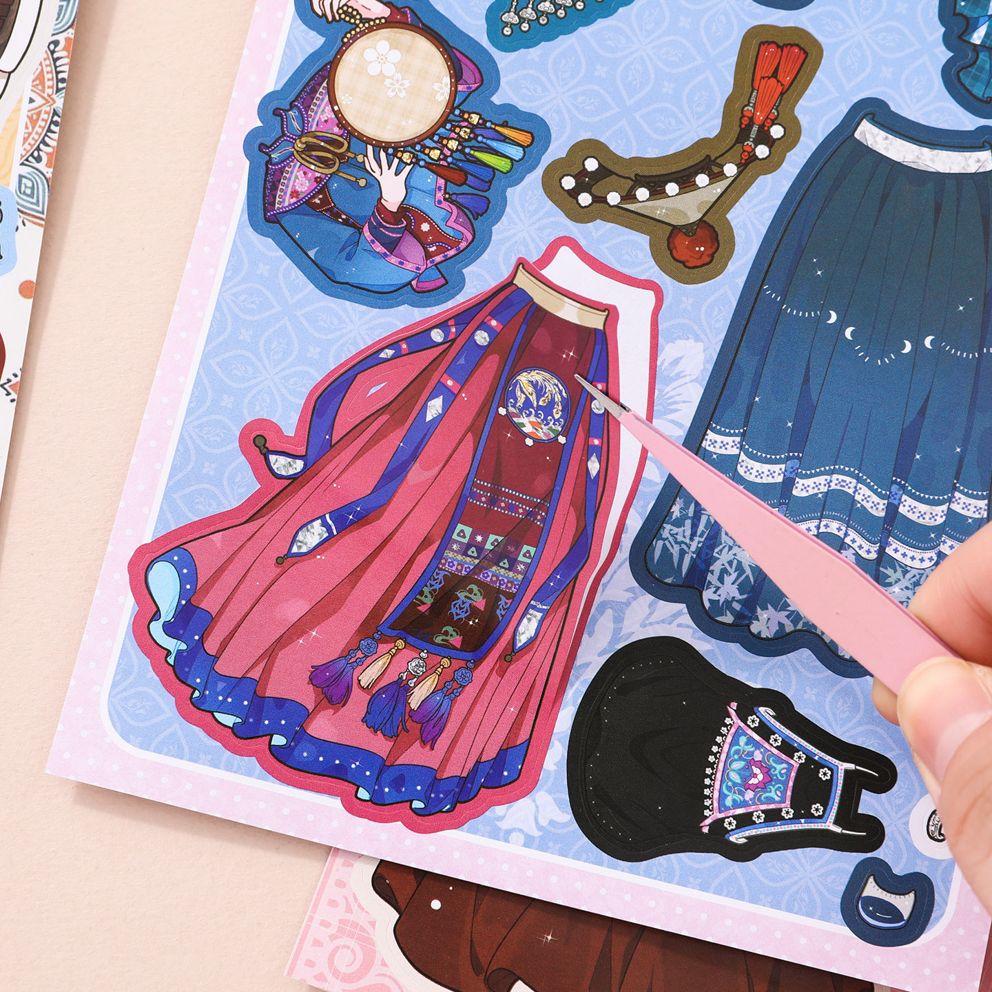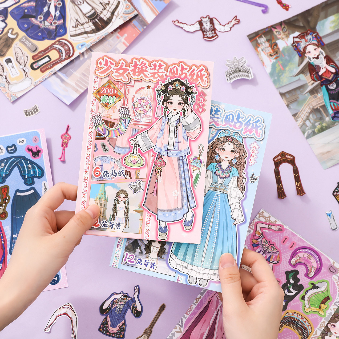 Xinmo Girl's Dream Collection Dress up Stickers Ethnic Style Character Scene Dress up Collection Children's Decorative Sticker Book