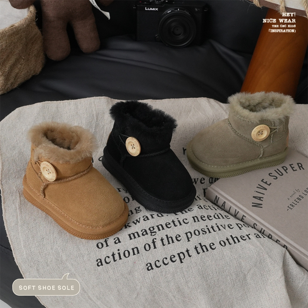 Xshx "Australian Button" Retro Kidsren's Snow Boots for Men and Women Winter Thickeneded Functional Slip-Ons [Wenzhou Shoes]