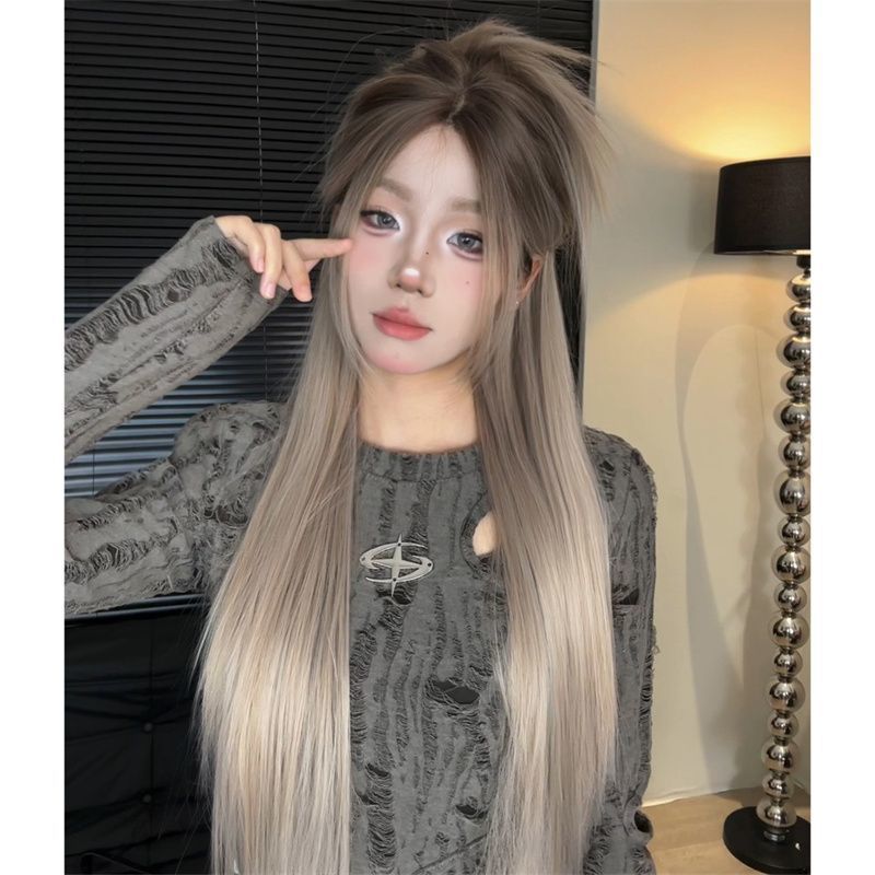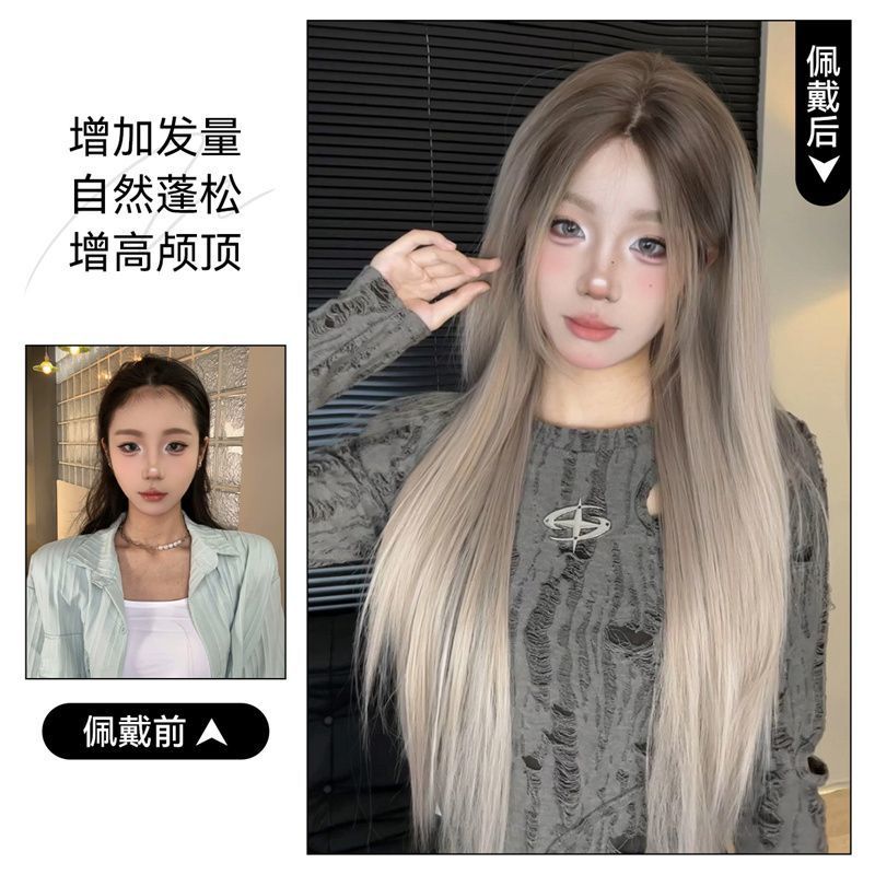 Xuchang Wig for Women, Lace Front, Long Straight Hair, Gradient Asian Style, Summer New Natural Temperament Full Headpiece