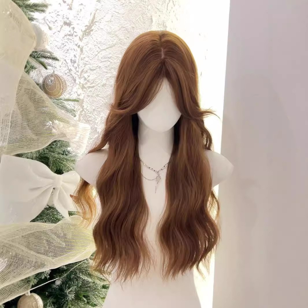 Xuchang Ziqi Wig Women's Warm Tea Brown Long Curly Hair Full Head Cover Simulation Fashion Age-reducing Mid-water Ripple Wig Cover
