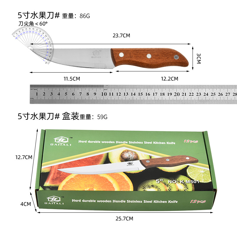 Yangjiang Knife Stainless Steel Fruit Knife Kitchen Knife Set Wooden Handle Convenient Outdoor Knife for Household Cutting Melons and Fruits