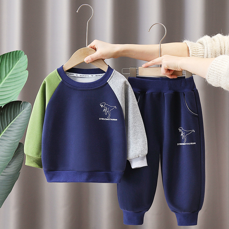 Yihao Kidsren's Clothing Boys' Suit 2025 New Autum Spliced Sleeve Dinosaur Kidsren's Sweatshirt Suit Baby Boy Clothes