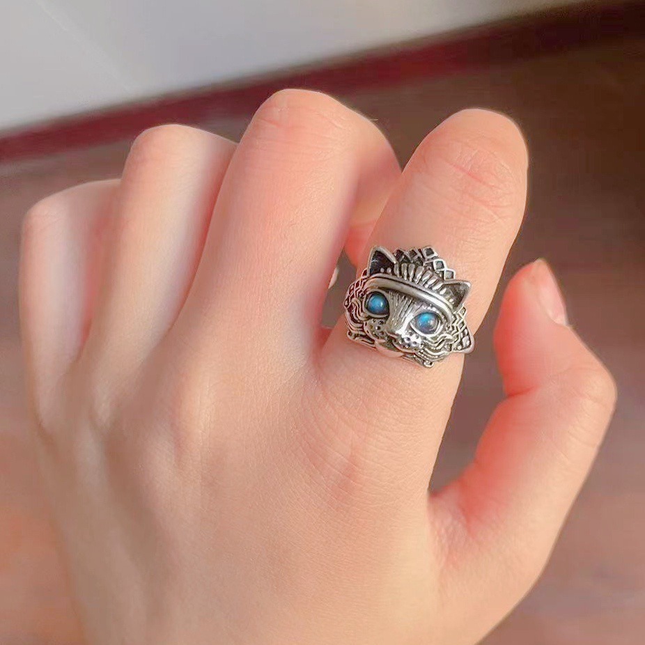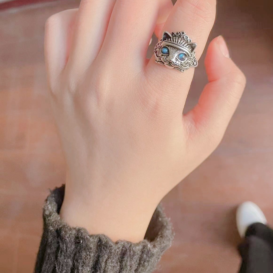 Yishang s925 Thai silver Indian cat ring all-match fashion personalized men's and women's fashionable design high-end exquisite gift