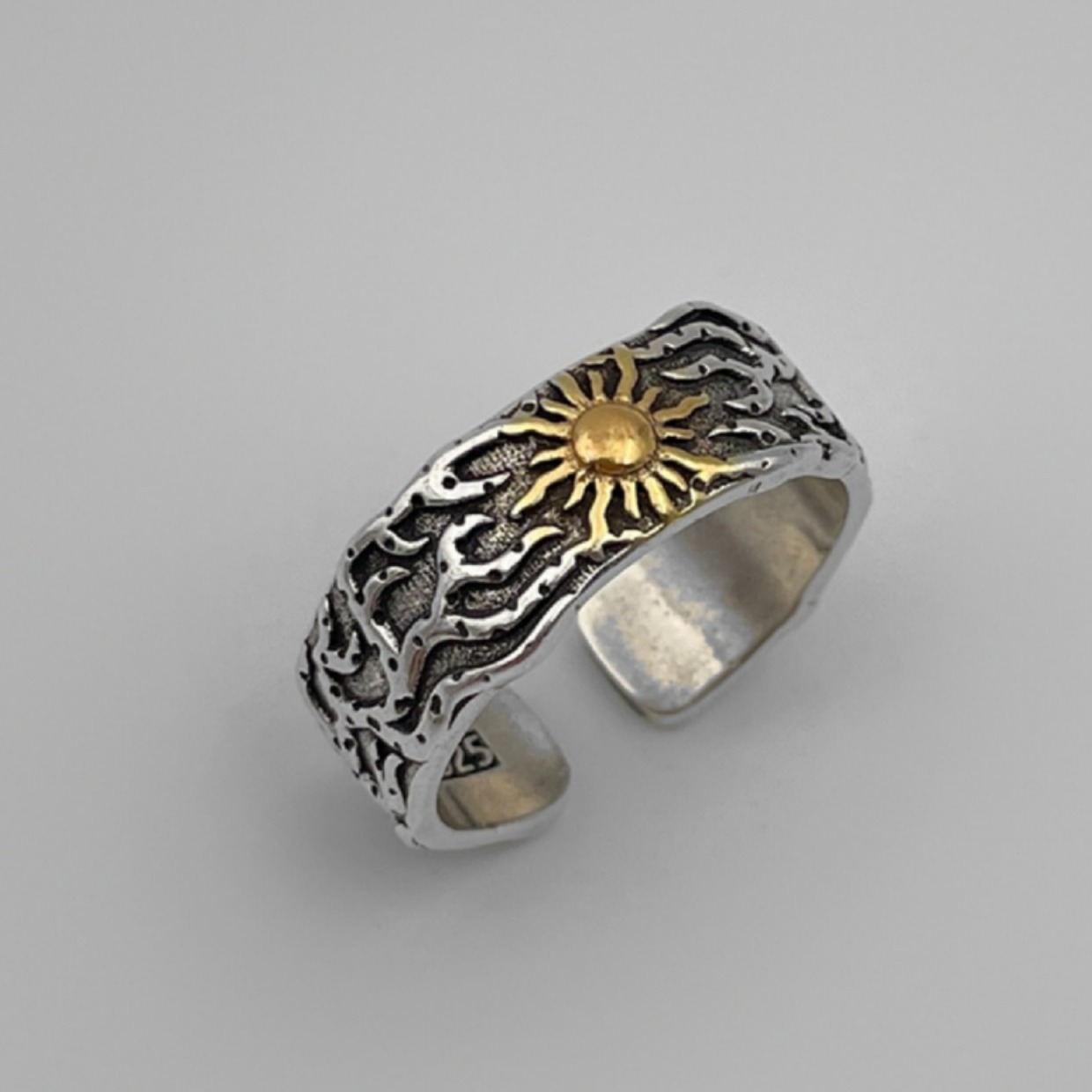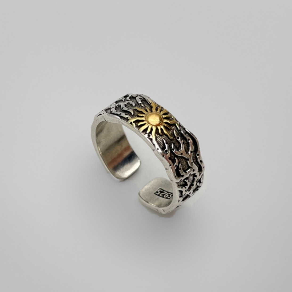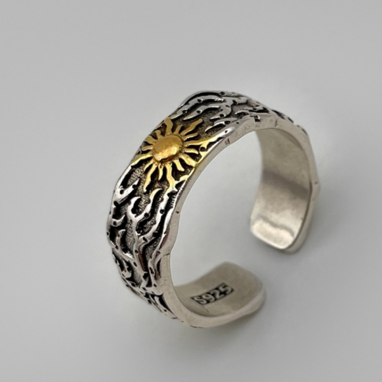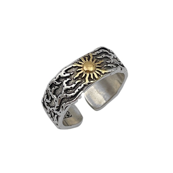 Yishang s925 Thai Silver Sun ring boys trendy original design niche retro personality Men's High Street ring