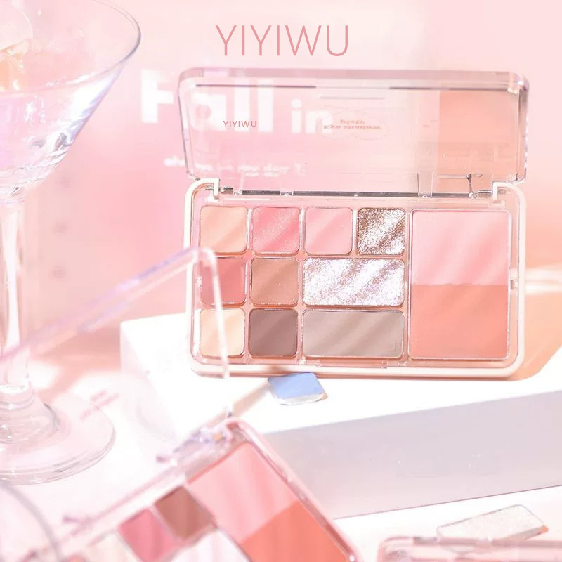 Yiyiwu Twelve Colors Heart-Stopping Eyeshadow Palette Pearlescent Matte Pink Earth Tone Brightening Daily Light Makeup Cosmetics Eyes
