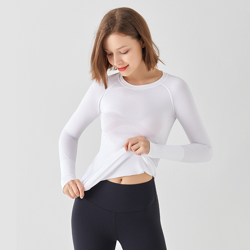 Yoga Tops, Sportswear, Round Neck T-Shirts, Long Sleeves, Slim Fit, Moisture-Wicking, Outdoor Cycling and Running, Breathable and Quick-Drying