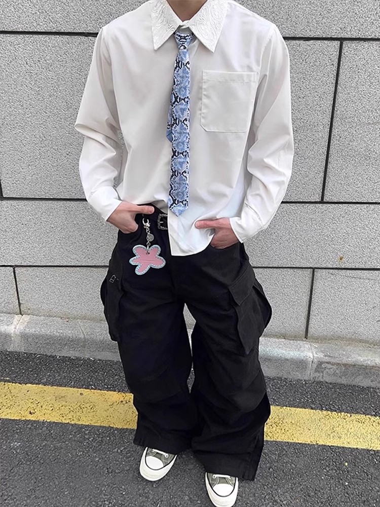 Youth Retro White Embroidered Flower Collar Shirts for Men and Women, Four-Season High-End Shirts, Handsome Design Jackets
