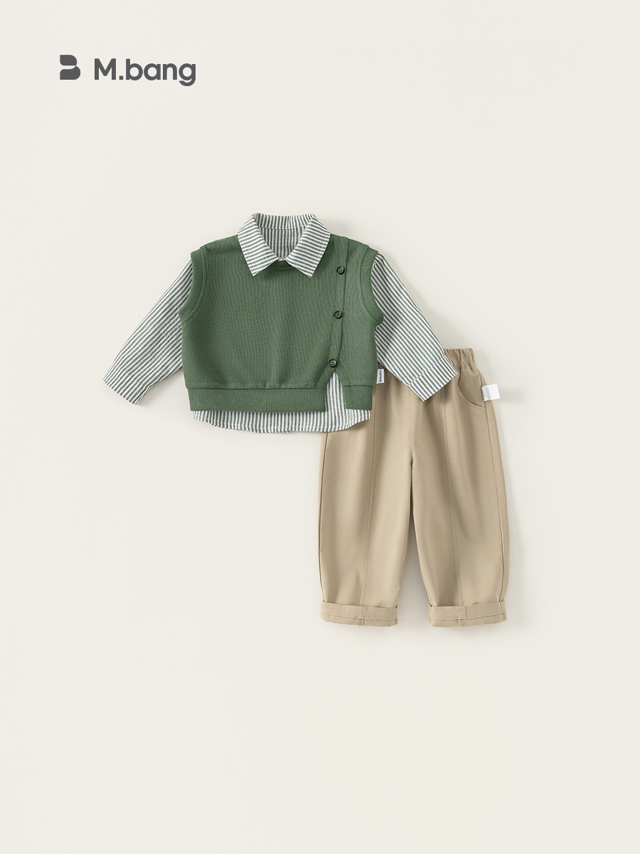 Yu Bao children's clothing boys suit spring 2025 new children's spring baby boy shirt waistcoat three-piece set