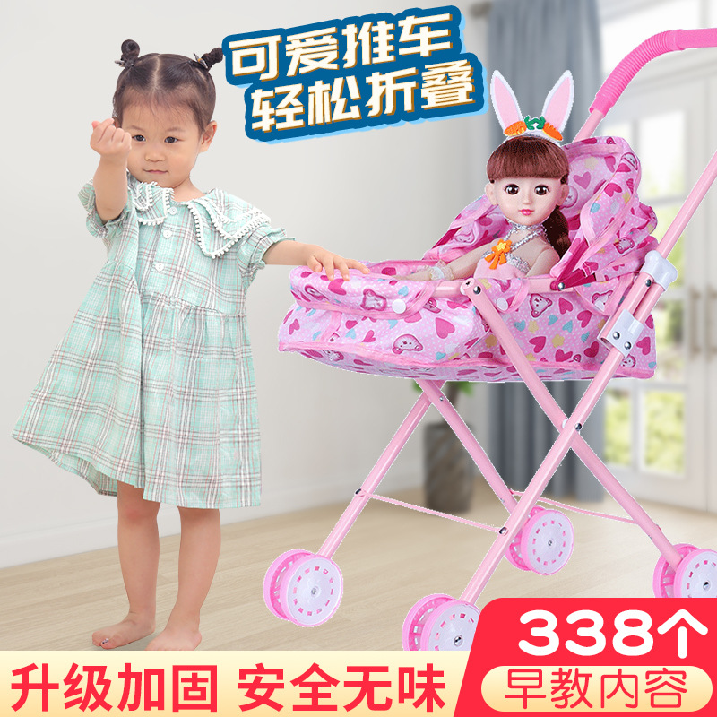 Yuanjirui Children's Toy Stroller, Educational Toy Trolley, Pretend Play for Girls, Foldable Stroller with Baby Doll